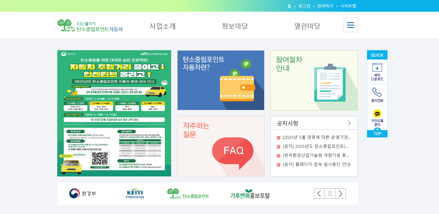 탄소중립포인트 자동차 제도에 참여하기 위해서는 먼저 공식 플랫폼에 가입해야 한다. 참여 경로는 아래와 같다.