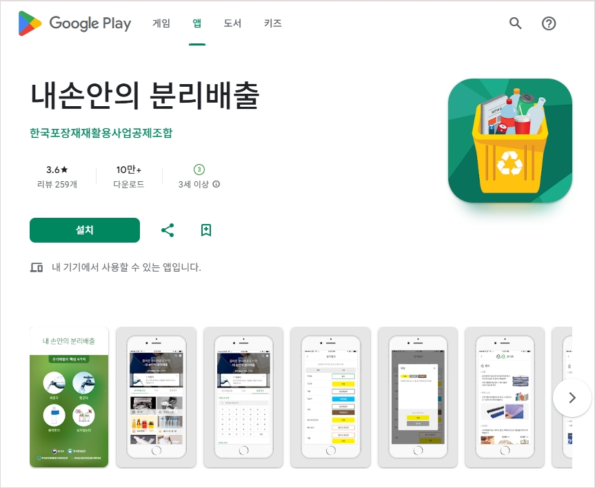 내손안의분리배출 앱을 사용하기 위한 첫 단계는 스마트폰에 앱을 설치하는 것입니다.