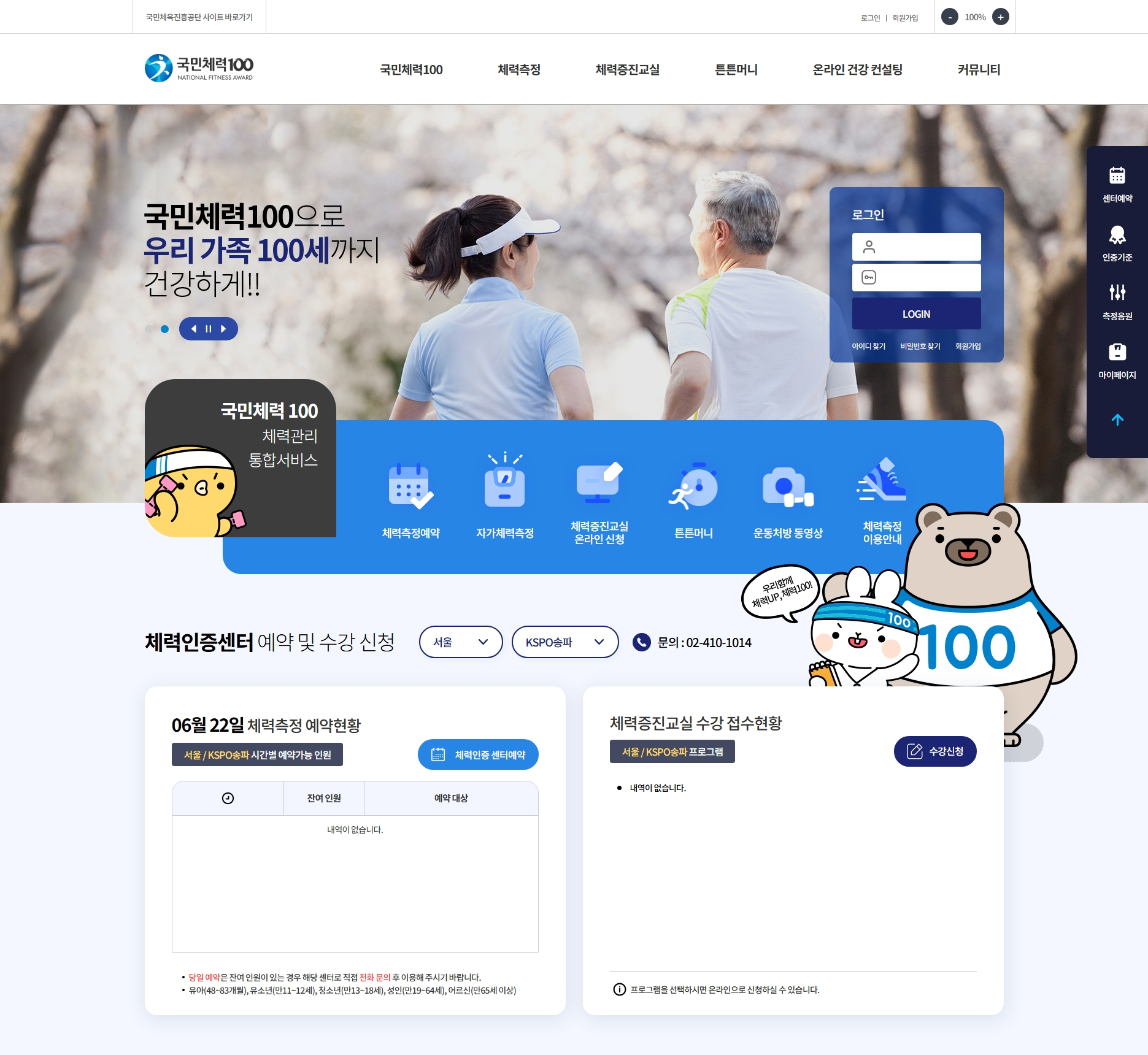 첫째, 국민체력100 공식 홈페이지를 이용하는 방법입니다.