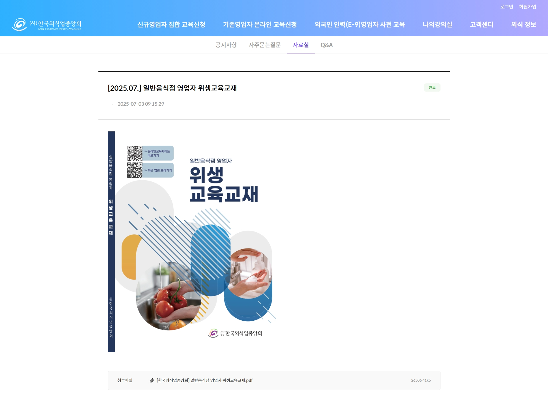 1. 한국 외식업 중앙회 온라인교육 필수 교육 대상