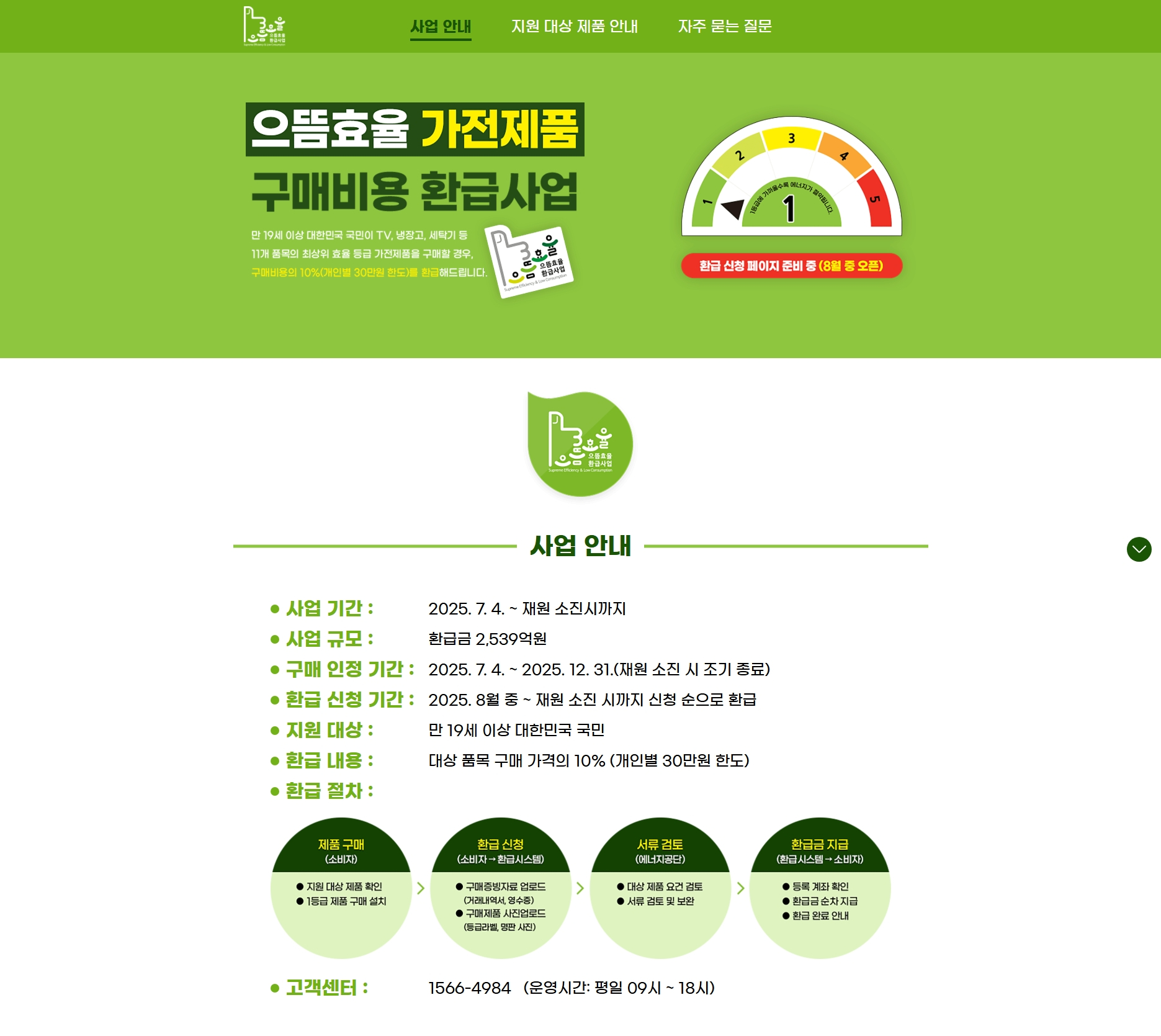 홈페이지 접속 : 으뜸효율 가전제품 환급 홈페이지에 접속합니다.